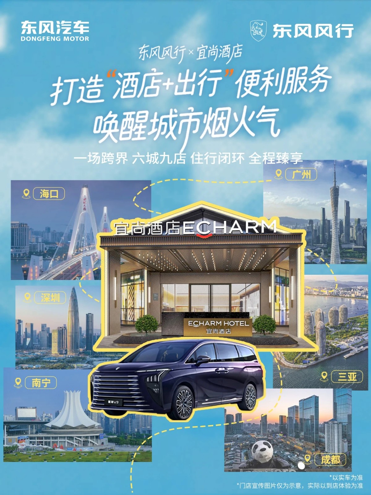 东风风行联动宜尚酒店6城9家门店推出「自在风行宜路悠享」酒店+出行服务星海V9为宾客提供宽敞舒适、随时响应的接机/站服务