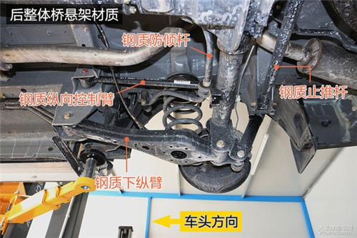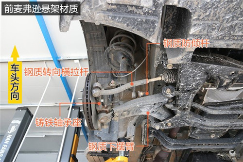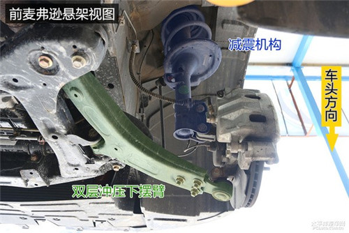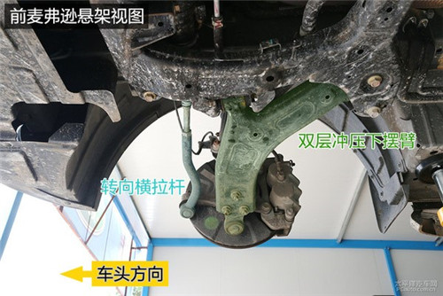 CM7的前悬采用的是麦弗逊式前悬。悬架部件皆采用钢材质,下摆臂和副车架使用的是双层冲压钢板焊接而成,整体的刚度相比单层冲压钢板要好。