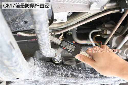 防倾杆能有效减少车辆高速转向时车辆的横向侧倾,提高车辆稳定性。电子游标卡尺测得CM7的前防倾杆直径为27.19mm。